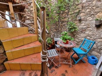 Charming house in the heart of L'Escala, just steps from Les Barques Beach. This welcoming home is perfect for a relaxing break by the sea. It features two double bedrooms, a full bathroom, a guest toilet, a kitchen-dining area, air conditioning, a TV with international channels, a small terrace, and a sun terrace ideal for relaxing outdoors. Excellent location, close to all amenities, restaurants, and shops.